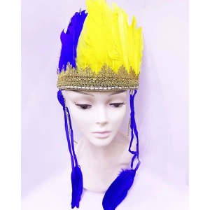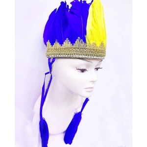 Sarı Lacivert Renk Tüylü Kızılderili Başlığı | Taraftar Başlığı