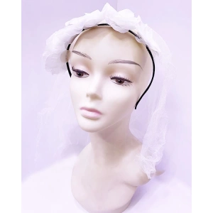 Uzun Duvaklı Üstü Beyaz Çiçekli Parti Tacı