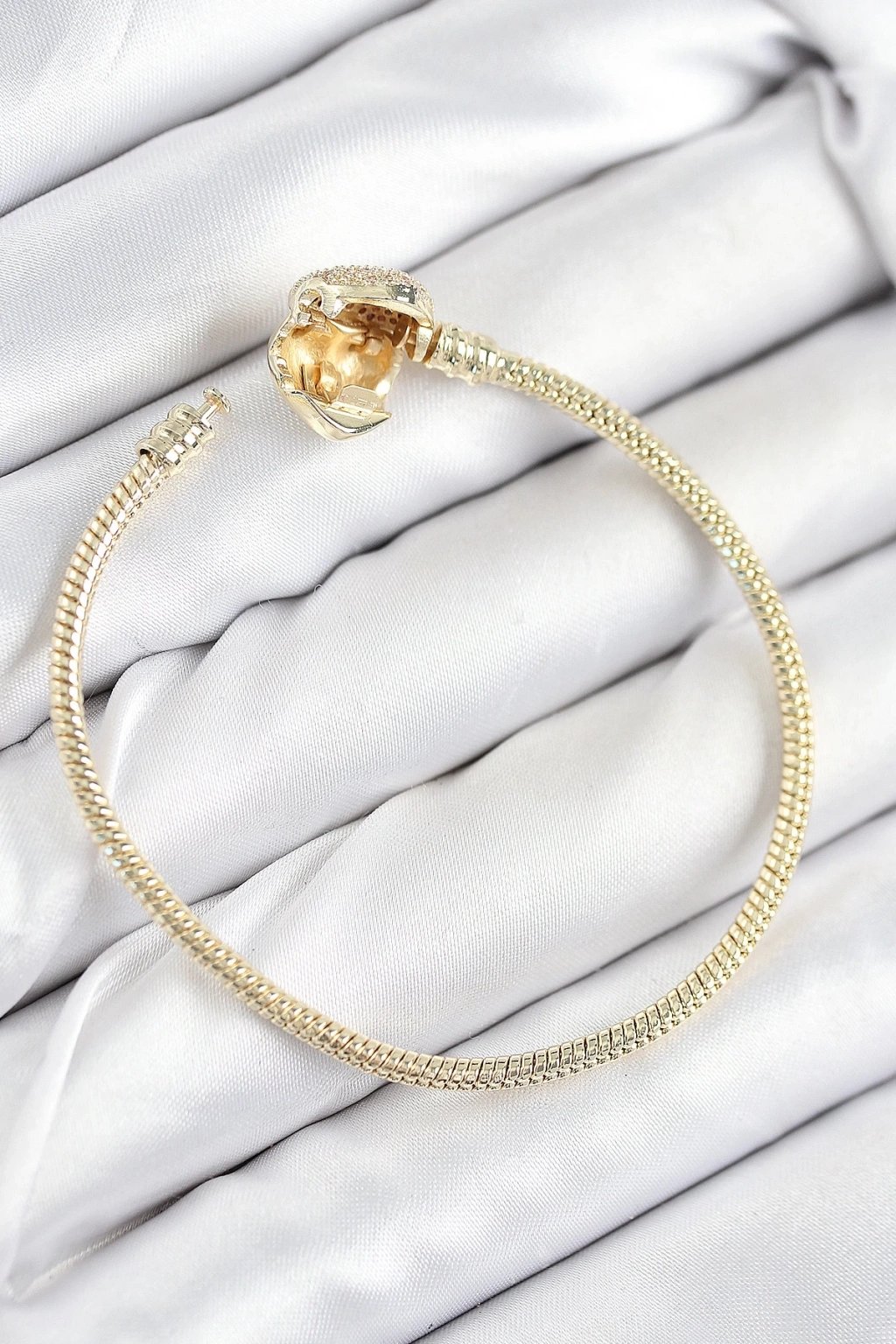 Pirinç Charm Zirkon Taşlı Kalp Model Gold Renk Kadın Bileklik