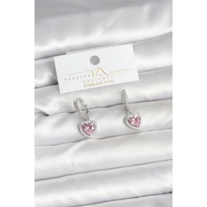 Pirinç Gold Pembe Renk Zirkon Taşlı Kalp Model Kadın Küpe