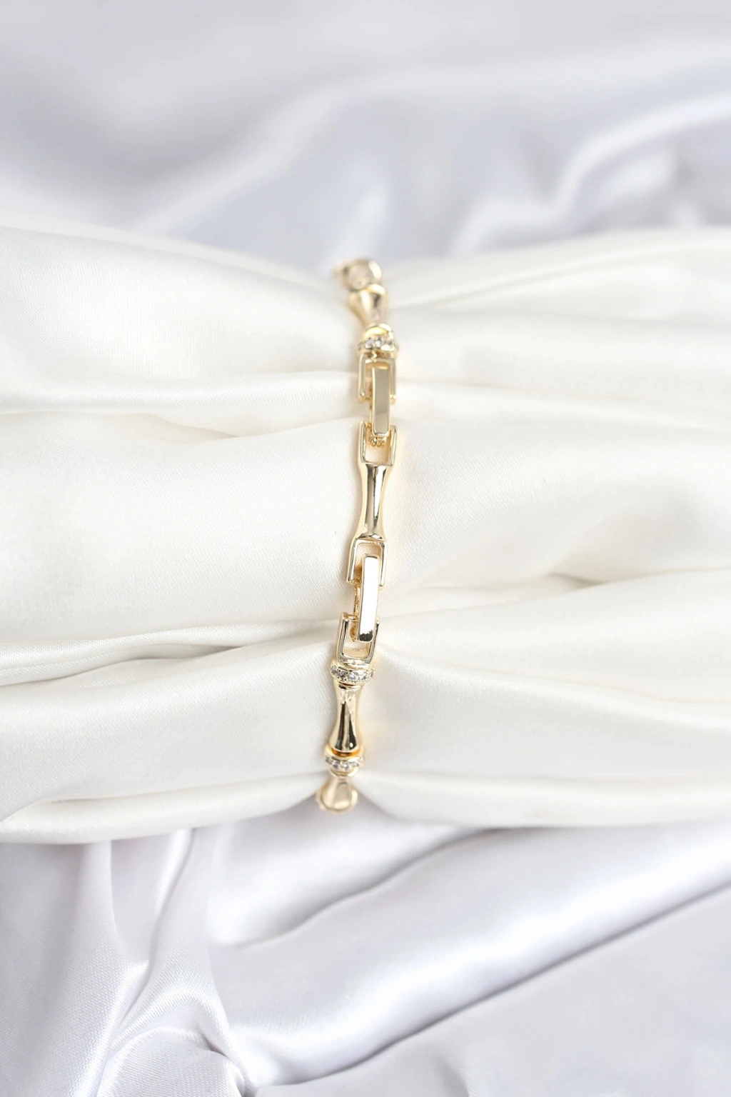 Pirinç Gold Renk Kemik Model Zirkon Taşlı Kadın Bileklik