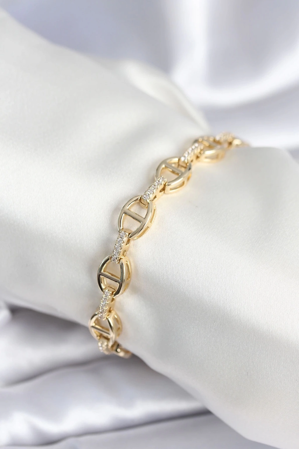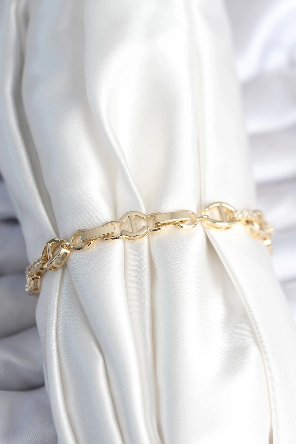Pirinç Gold Renk Parçalı Zincir Model Kadın Bileklik