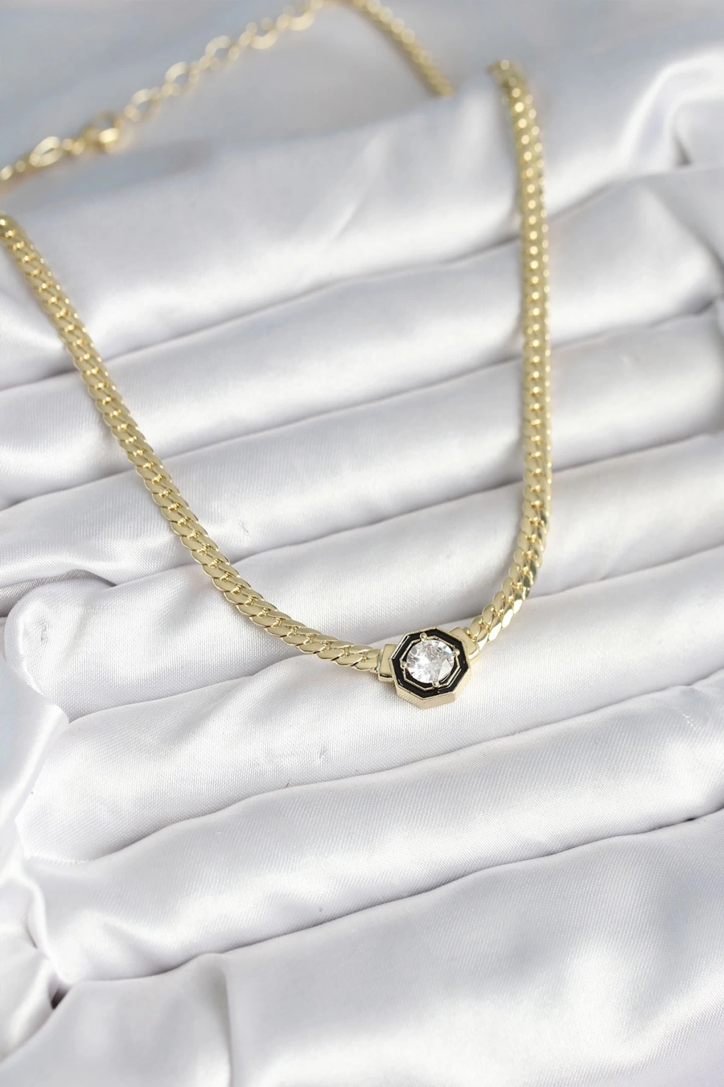 Pirinç Gold Renk Zirkon Taşlı Kadın Kolye