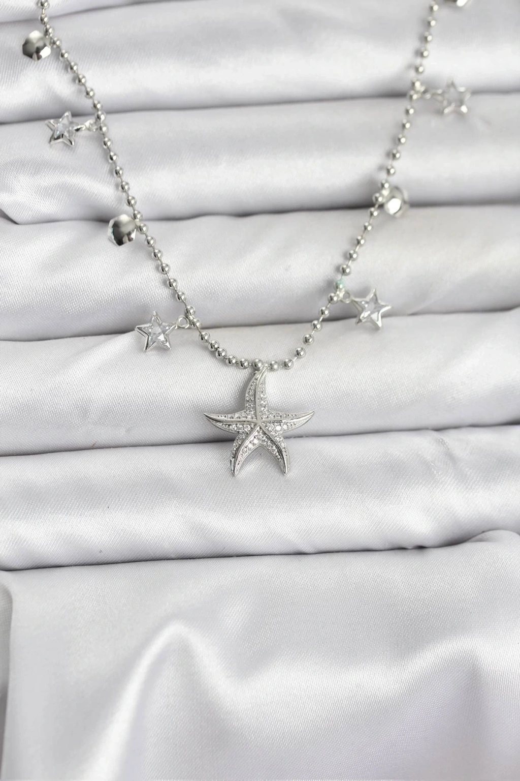 Pirinç Gümüş Renk Zirkon Taşlı Deniz Yıldızı Model Kadın Kolye