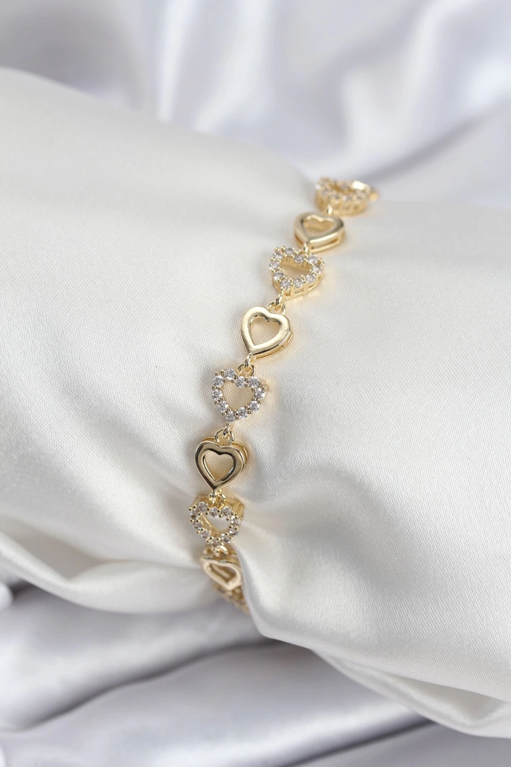 Pirinç Vıp Seri Gold Renk Sıralı Kalp Model Kadın Bileklik