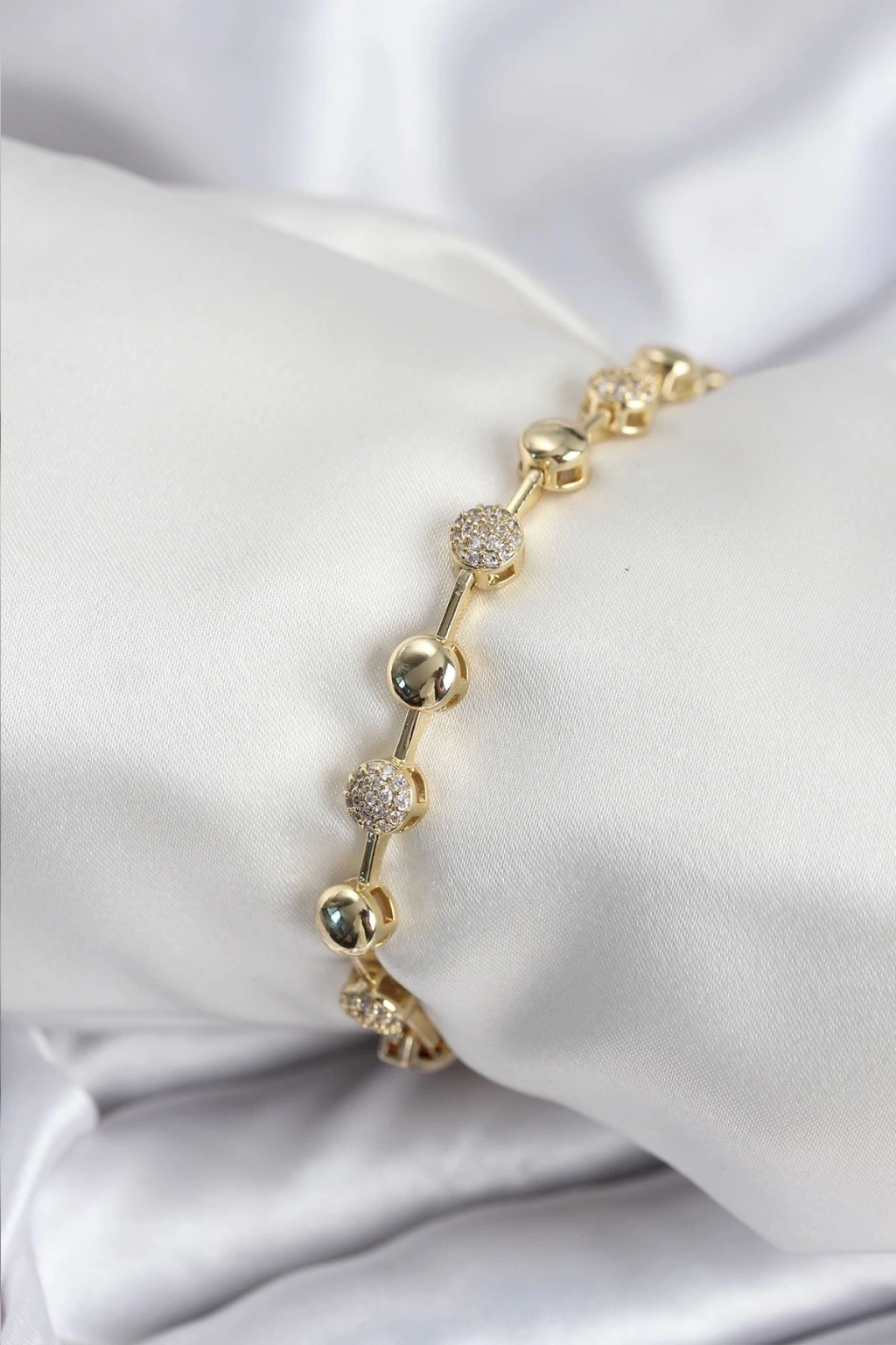 Pirinç Vıp Seri Gold Renk Topçuk Model Kadın Bileklik