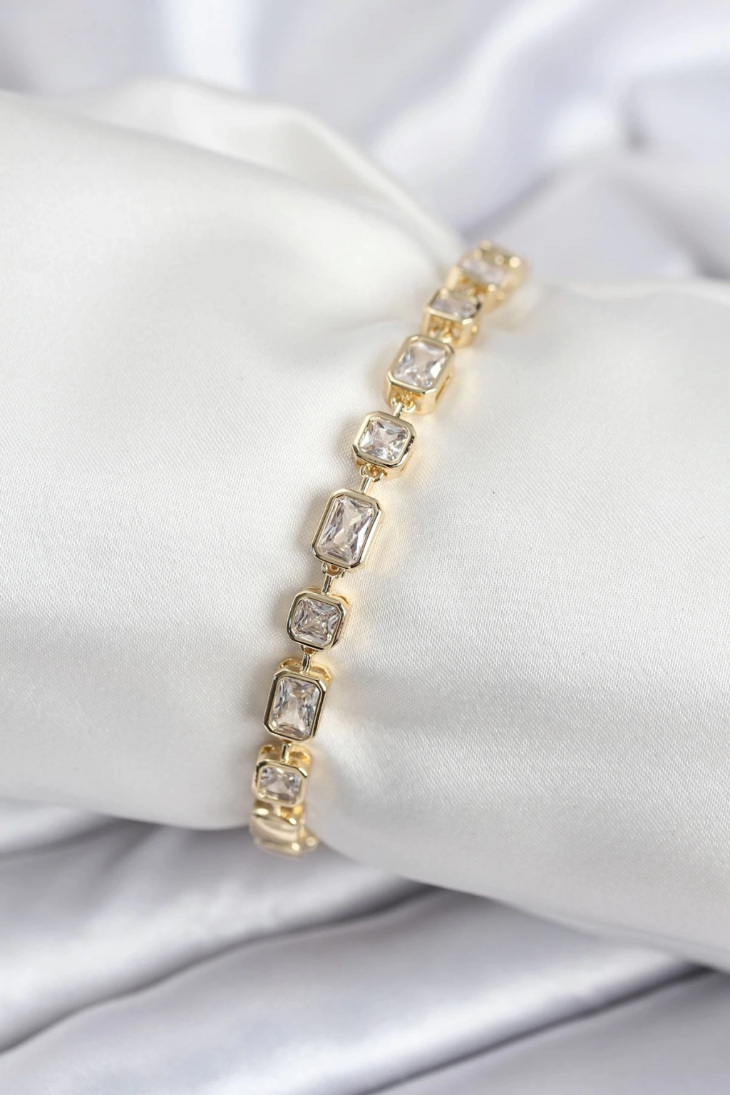 Pirinç Vıp Seri Zirkon Taşlı Gold Renk Kadın Bileklik