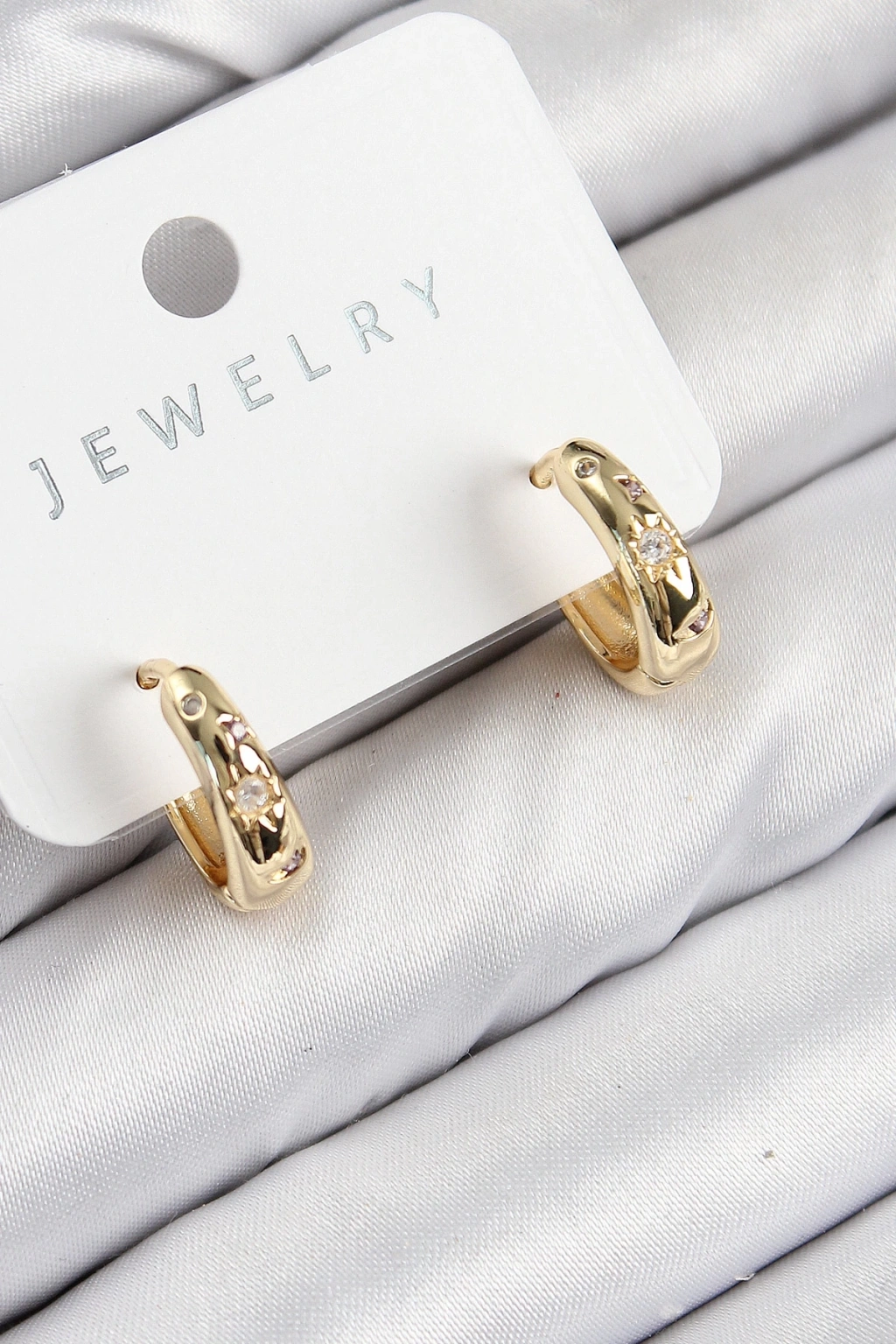 Pirinç Zirkon Taşlı Halka Model Gold Renk Kadın Küpe