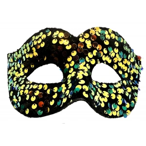 Altın Renk Arkadan Lastikli Pul Payet İşlemeli Balo After Parti Maskesi