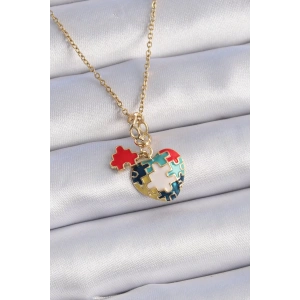 316L Çelik Gold Renk Yapboz Motif Kalp Figür Charm Model Kadın Kolye