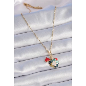 316L Çelik Gold Renk Renkli Kalp Figür Charm Model Kadın Kolye