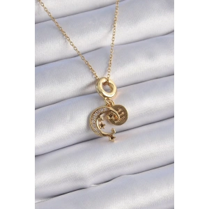 316L Çelik Gold Renk Zirkon Taşlı Ay Yıldız Model Charm Model Kadın Kolye
