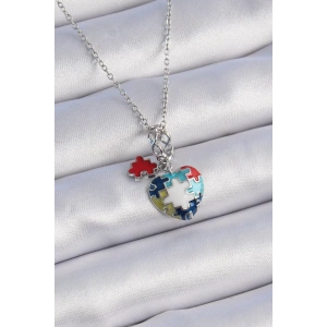 316L Çelik Gümüş Renk Yapboz Motif Kalp Figür Charm Model Kadın Kolye