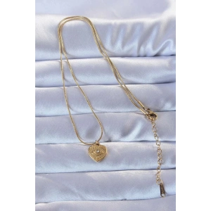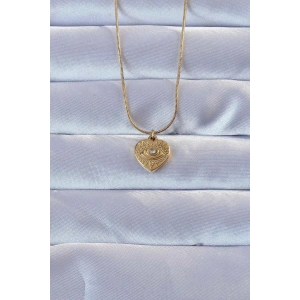 316L Altın Renk Zirkon Taşlı İşlemeli Göz Detay Kalp Kolye