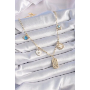 Gold Renk Zirkon Taşlı Çoklu Figür Model Şans Kolyesi