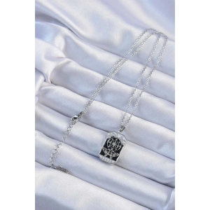 316L Çelik Zincir Gümüş Renk Zirkon Taşlı Çerçeveli Tarot Kolye