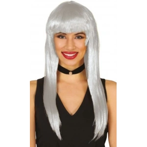 Platin Gri Gümüş Renk Uzun Parti Peruğu Uzun Takma Peruk