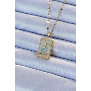 316L Çelik Zincir Altın Renk Mavi Mineli Tarot Kolye