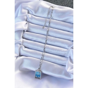 316L Çelik Zincir Gümüş Renk Mavi Mineli Tarot Kolye