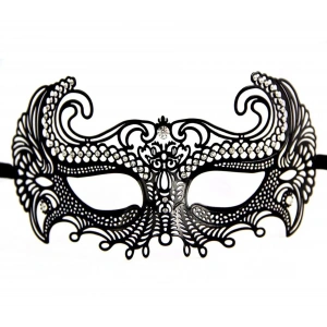 Siyah Renk Lazer Kesim Üzeri Kristal Taşlı Metal Balo Parti Venedik Maskesi