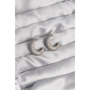 Pirinç Gümüş Renk Zirkon Taşlı Yarım Halka Küpe