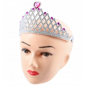 Fuşya Kalpli Gümüş Renk Kraliçe Tacı Prenses Tacı