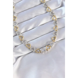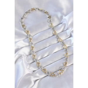 Vip Seri Pirinç Çift Renk Zirkon Taşlı İçi Boş Kalp Tasarımlı Kolye