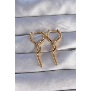 Pirinç Gold Renk Damla Kıvrım Tasarımlı Halka Küpe