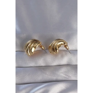 Pirinç Gold Renk Tırtıklı Minimal Bombeli Tasarım Küpe