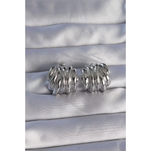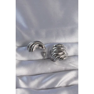 Pirinç Gümüş Renk Tırtıklı Minimal Bombeli Tasarım Küpe