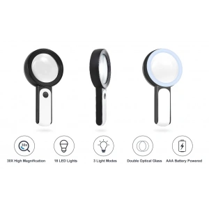 30x 12ışıklı Büyüteç Taşınabilir Çıft Katmanlı Optik Cam Okuma Büyüteç 229018