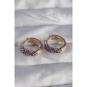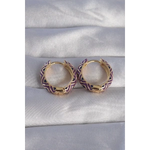 Pirinç Gold Renk Mor Etnik Desenli Halka Küpe