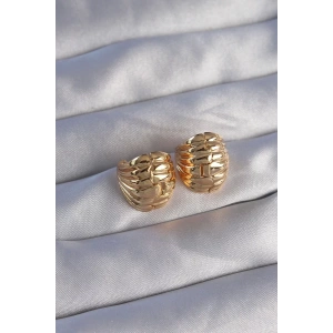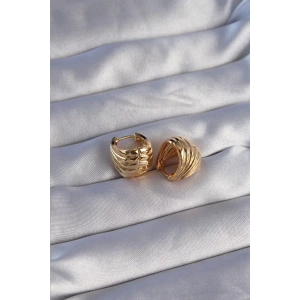 Pirinç Gold Renk Tırtıklı Minimal Bombeli Tasarım Küpe