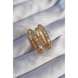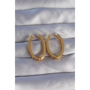Pirinç Gold Renk Zirkon Taşlı Oval Model Küpe