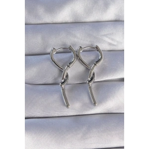 Pirinç Gümüş Renk Sarmal Çubuk Tasarımlı Uzun Küpe