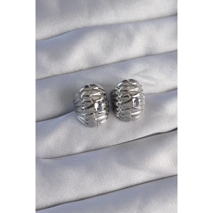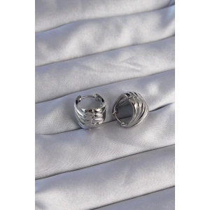 Pirinç Gümüş Renk Tırtıklı Minimal Bombeli Tasarım Küpe