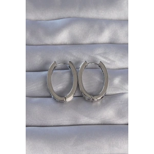 Pirinç Gümüş Renk Zirkon Taşlı Oval Model Küpe