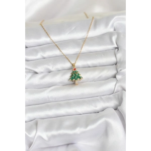 316L Çelik Zincir Gold Renk Çam Ağacı Model Yılbaşı Temalı Kadın Kolye