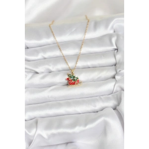 316L Çelik Zincir Gold Renk Kızak ve Çam Ağacı Figürlü Yılbaşı Temalı Kadın Kolye