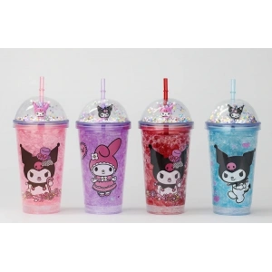 Sevimli Kuromi Işıklı Pipetli Boncuklu Suluk & Bardak 400 Ml Alk3144