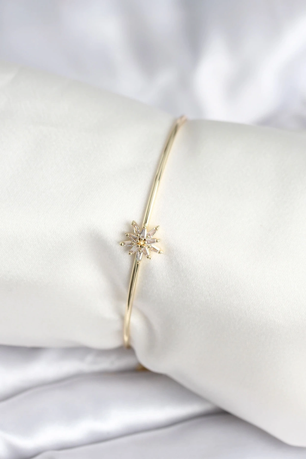 Yıldız Figürlü Gold Renk Pirinç Kadın Bileklik
