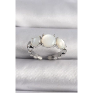 Pirinç Gümüş Renk Beyaz Sedefli Yonca Model Kadın Yüzük