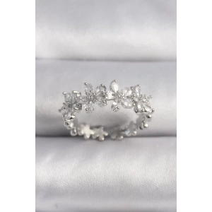 Pirinç Gümüş Renk Zirkon Taşlı Çiçek Model VIP Seri Kadın Yüzük