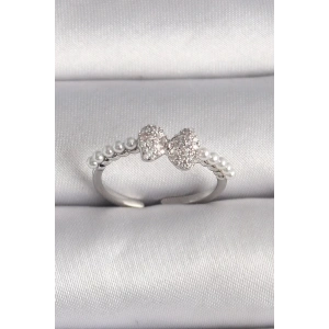 Pirinç Gümüş Renk Zirkon Taşlı Fiyonk İnci Detay Ayarlanabilir Yüzük