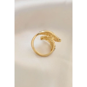 Ayarlamalı Gold Renk Metal Zirkon Taşlı Kanat Yüzük