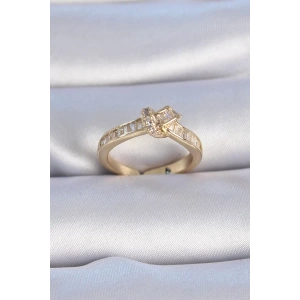 Pirinç Gold Renk Zirkon Taşlı Kadın Yüzük