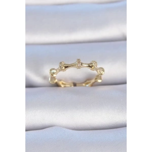Pirinç Gold Renk Zirkon Taşlı İnci Detay Kadın Yüzük