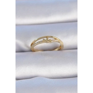 Pirinç Gold Renk Zirkon Taşlı "V" Model Kadın Yüzük