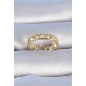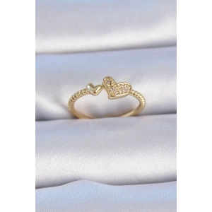 Pirinç Gold Renk Zirkon Taşlı Kalp Model Kadın Yüzük