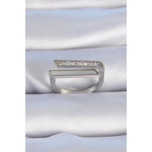Pirinç Gümüş Renk Zirkon Taşlı Kadın Yüzük